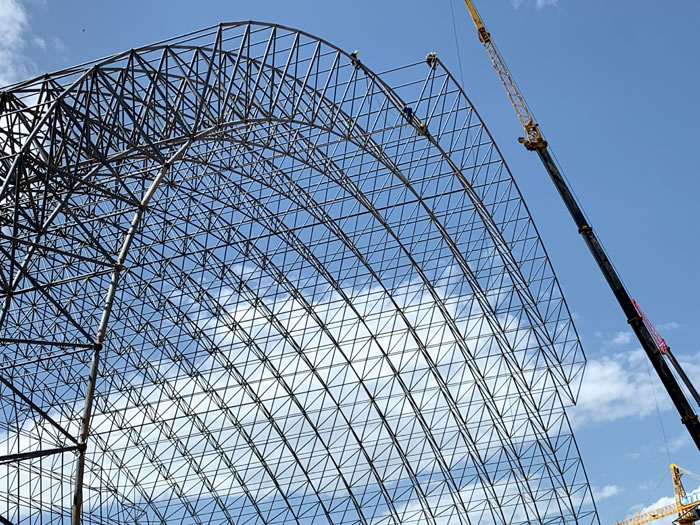 (2)网架加工前应对现场尺寸进行复测,确认无误后方可进行加工、安装;网架制作、运输、安装应遵守《空间网格结构技术规程》JGJ7-2010、《钢网架邯郸螺栓球节点》JG/T 10-2009、《钢网架邯郸螺栓球节点用高强度螺栓》 GB/T 16939-2016、《邯郸钢结构邯郸工程邯郸施工规范》 GB50755-2012、《邯郸钢结构邯郸工程施工质量验收标准》 GB50205-2020。